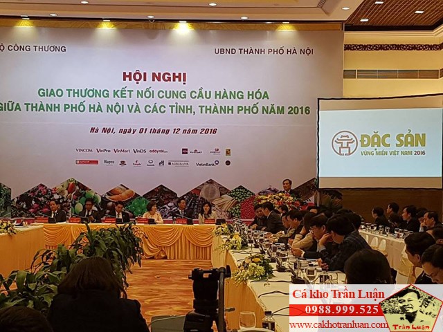 ca kho lang vu dai tai hoi choNgày 01/12/2016, Cơ sở cá kho Trần Luận vinh dự cùng đoàn đại biểu tỉnh Hà Nam tham dự hội nghị giao thương và trưng bày sản phẩm vùng miền tại Trung tâm Hội nghị Quốc tế số 11 Lê Hồng Phong, Hà Nội.Hội nghị diễn ra trong vòng 01 ngày. Trong buổi sáng, các tỉnh trưng bày sản phẩm đặc sản vùng miền tại các gian hàng .