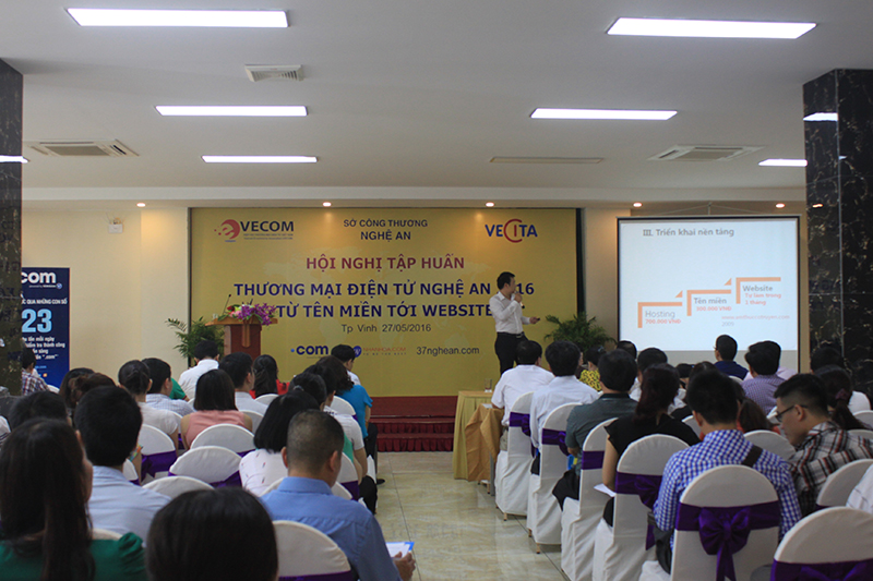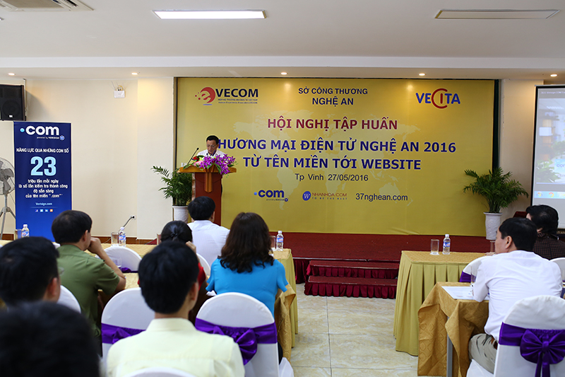 Buổi tập huấn do Hiệp hội Thương mại điện tử Việt Nam Vecom và Bộ Công Thương chủ trì cùng với sự hỗ trợ của Sở Công thương tỉnh Nghệ An. Tham gia tập huấn có các chuyên gia thương mại điện tử đến từ Sở Công thương cũng như đại diện của các doanh nghiệp uy tín trong lĩnh vực Thương mại điện tử. Mục tiêu chính của buổi tập huấn là giúp các doanh nghiệp Nghệ An thấy rõ sự thuận lợi trong việc áp dụng Thương mại điện tử, website, tên miền vào việc kinh doanh, buôn bán hàng hóa.